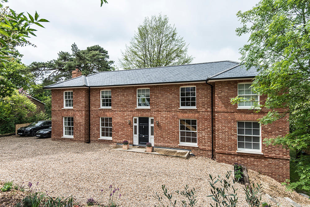 The house was designed around the clients’ wishes to be able to accommodate guests comfortably. The sloped plot needed to be re-shaped to allow a large, level garden space for a young family.