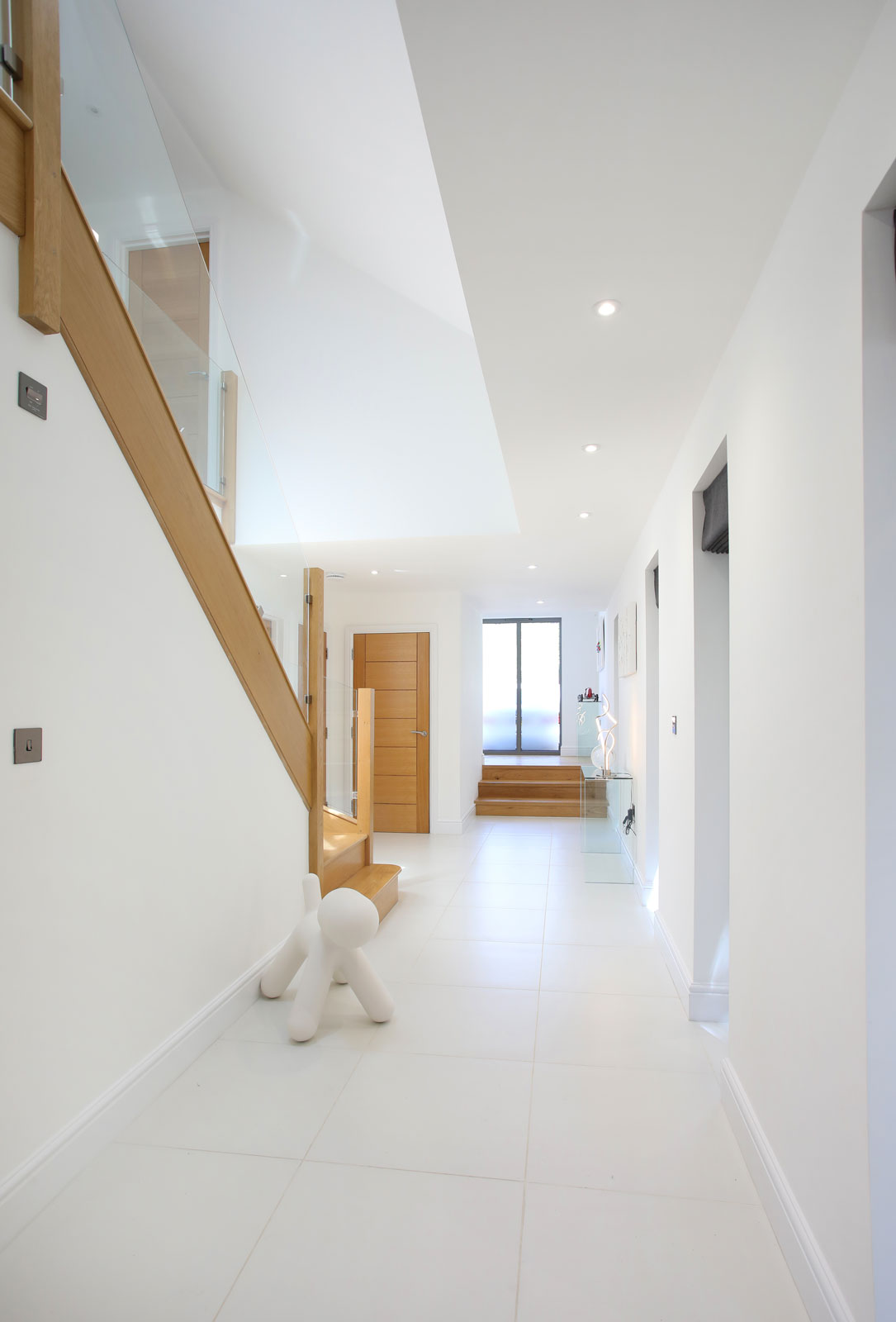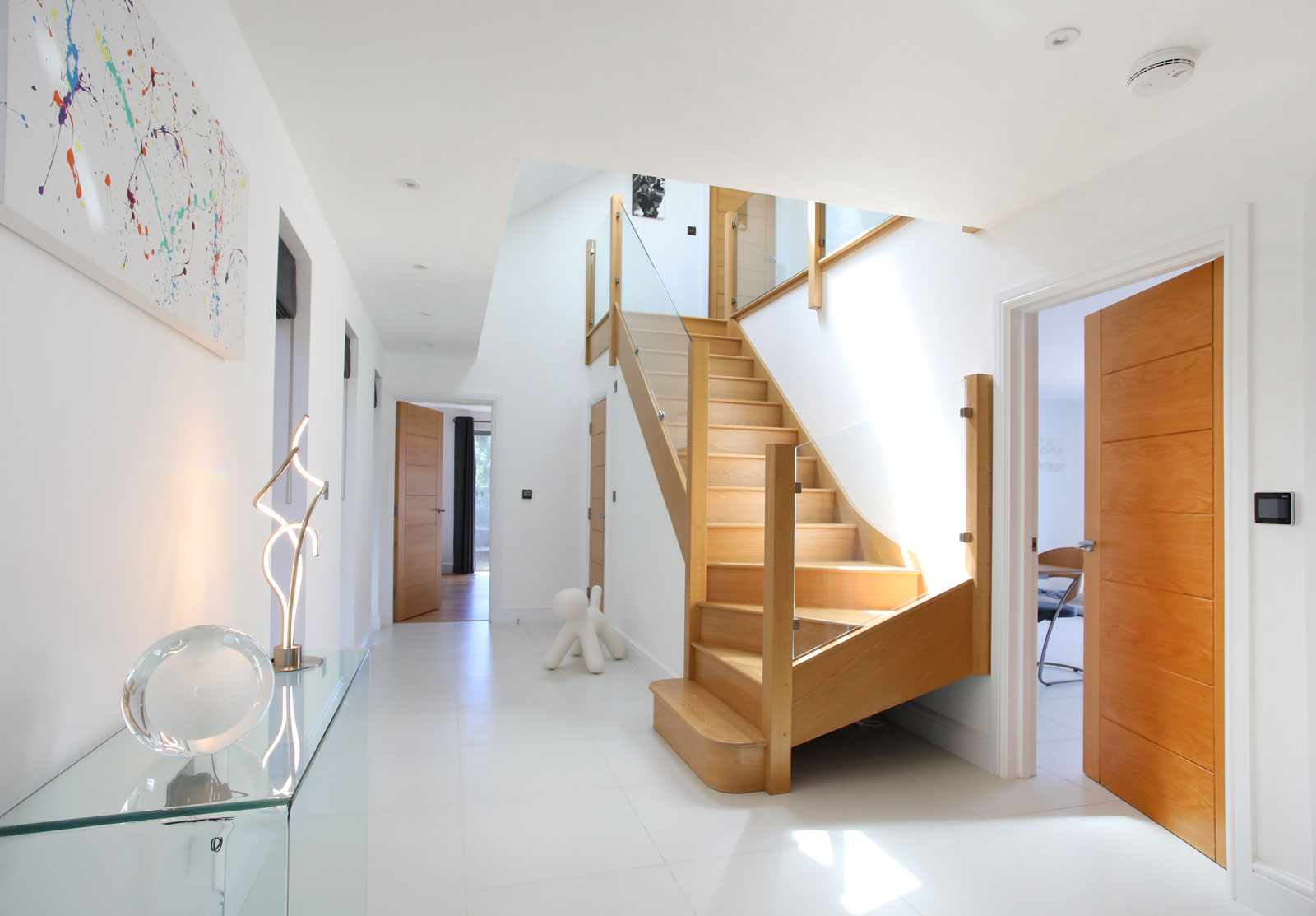 The Oak staircase is an integral feature of the property. We worked with the clients on options for the level change in the front hall to enhance this feature.