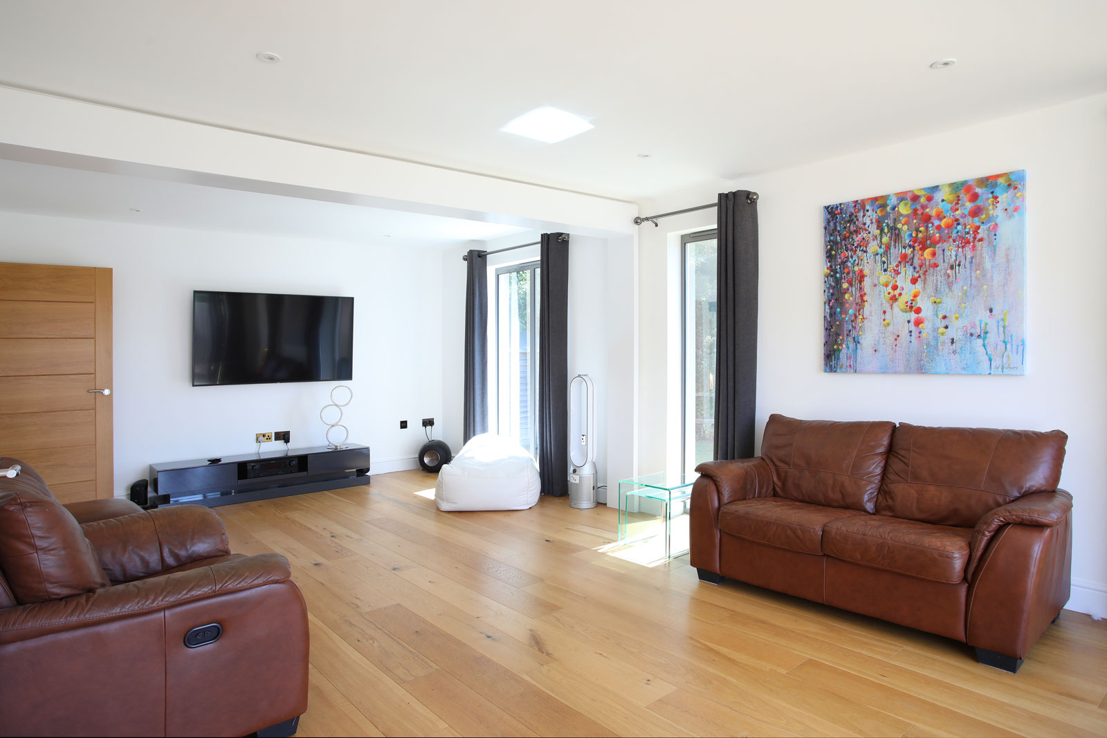 An internal wall was removed and a new steel beam put in to create a larger sitting room giving the spacious open plan effect.