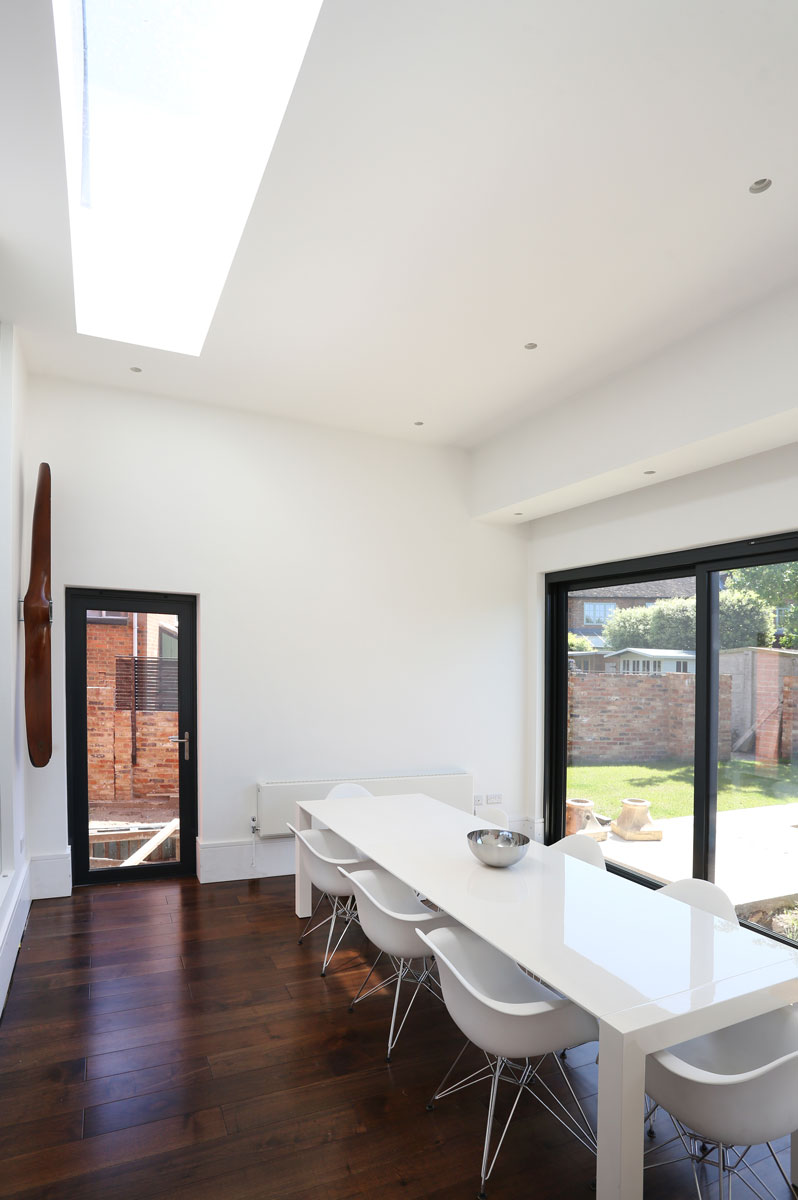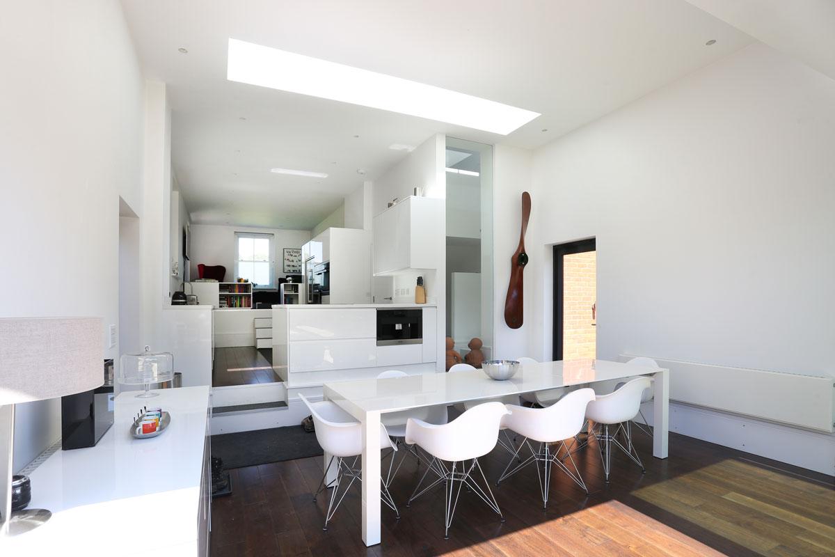 The challenge throughout for the successful completion of the works was to maintain a good relationship with all the close neighbours. As the houses face onto the village green, access from this side was costly and restricted so virtually all vehicle movement in and out of the site was via a narrow track between neighbouring houses. Jamie O’Brien set up an open meeting with the Parish Council so that neighbours could ask questions and understand the program of works and implications for them. Deliveries were arranged around the needs and wishes of the neighbours and a database was set up so that key dates such as removal of demolition materials, could be communicated clearly. The village green was protected and fenced off for odd days to allow a crane to offload structural beams or roof trusses.