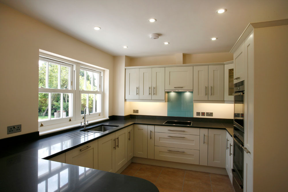 Following site clearance, including an old tennis court and garage, the structure was built using a mixture of masonry to ensure a good thermal store and insulated timber to create a highly efficient envelope. A ground source heat pump was installed, designed specifically for the plot, to cover heating and hot water. During the first twelve months of habitation, the electrical costs, covering all heating, hot water, power and lighting, including ovens was only £1800.