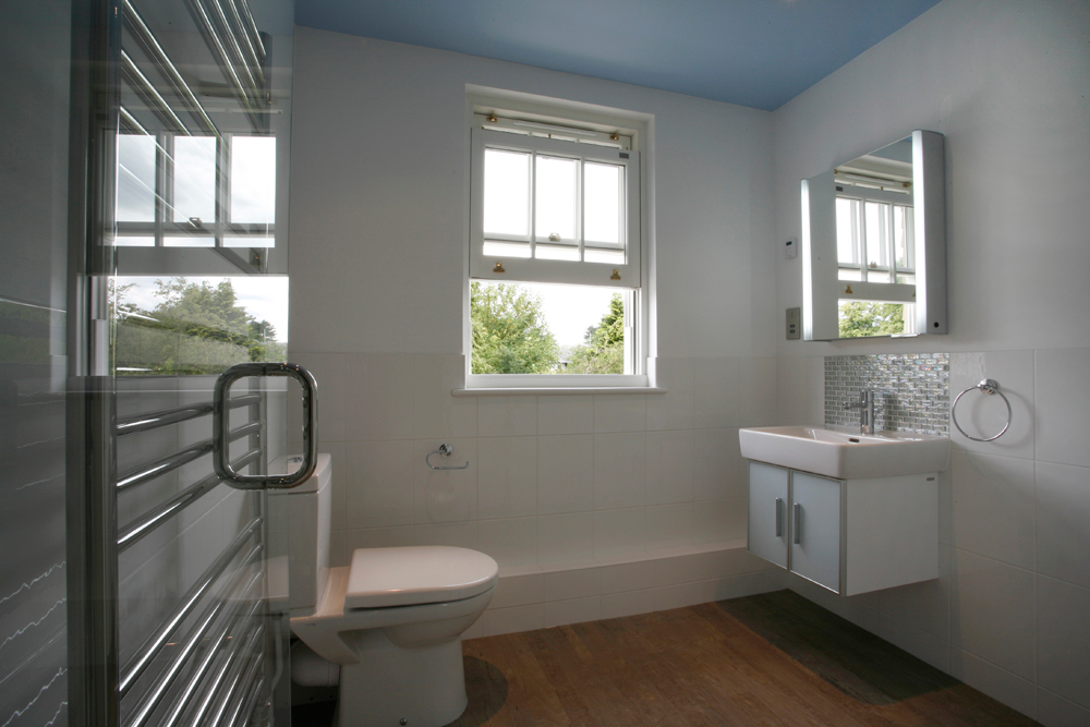 Improvements were made to an existing planning approval to offer more space and light to create an extra bedroom. Bygone windows, aluminium gutter and through colour acrylic render was selected. An energy expert was used to advise us on the performance and efficiency of the building.